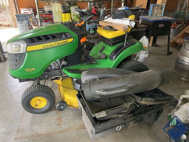 John Deere D105 Auto Lawn Mower with Grass Collector Bags *running*